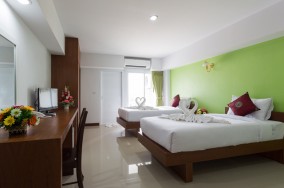 Twin bedroom Submitted by admin on Thu, 07/14/11 - 20:30 ห้องพักขนาด 25 ตารางเมตร เตียงคู่ พร้อมแอร์ ทีวีดาวเทียว ตู้เย็น เครื่องทำน้ำอุ่น อินเตอร์เน็ตไร้สาย ลิฟต์บริการถึงทุกชั้น... 0 Read more